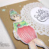 Prima di tutto ho timbrato Miss Cupcake con dell'inchiostro Memento, poi l'ho colorata con i promarker e ritagliata. Ho aggiunto alcuni dettagli con le penne nera e bianca, insieme con un poco di Nuvo Clear Drops per dare risalto agli occhi.